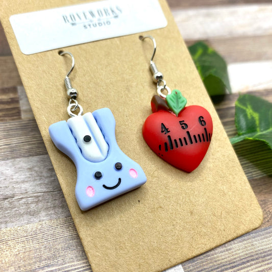 TEACHER Mismatched Earrings - Pencil Sharpener & Apple Ruler
